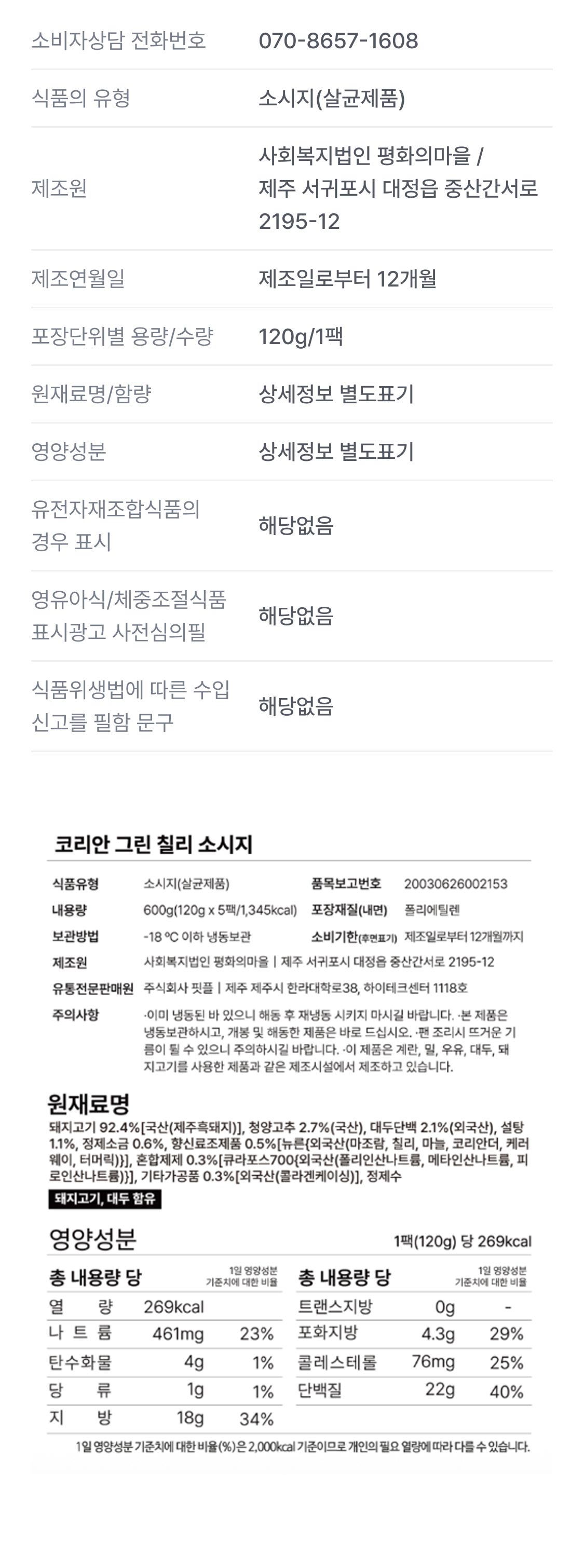 • 코리안 그린 칠리 소시지 5팩 (총 10개입)