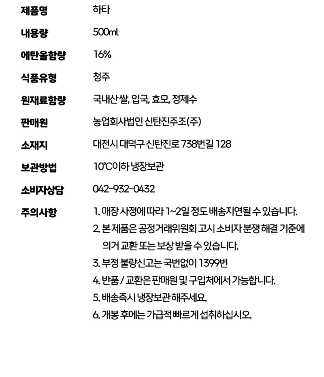 하타는 유씨종가의 100년 양조 비법과 청정한 물, 국내산 쌀이 만나 완성된 전통 청주입니다.