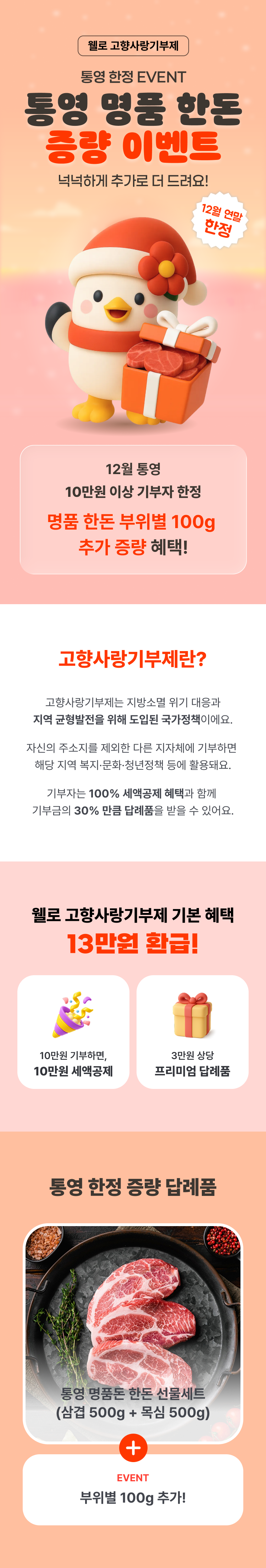 통영 명품 한돈 선물세트 (삼겹 500g+목심 500g) + 부위별 100g 추가 증량