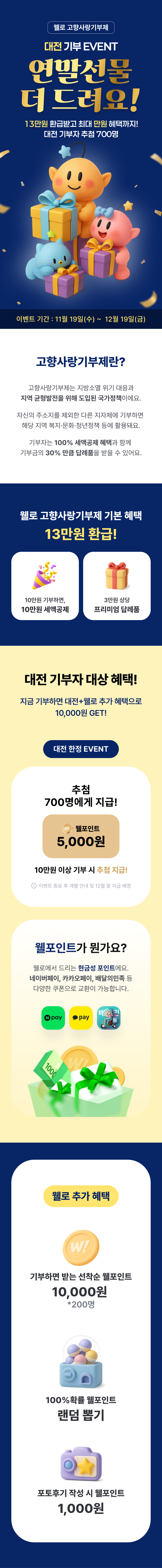 [EVENT] 대전엑스포 꿈돌이 열차블럭(한정판)100,000원기부시 증정(87)[11/26 주문건부터 1/13 순차배송] 성심당 마들파운드2호100,000원기부시 증정(23)아기요정 꿈돌이 꿈순이 인형94,000원기부시 증정(2)[12/13 주문건부터 12/23 순차발송] 성심당 상품권 3만원권100,000원기부시 증정(115)